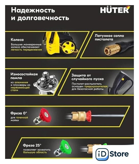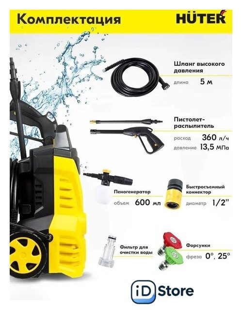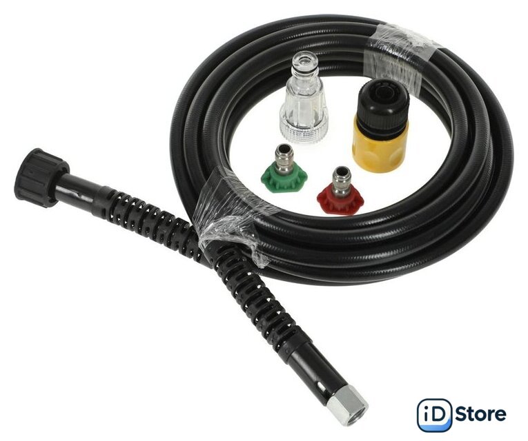 | Комплектация | - Мойка высокого давления- Пистолет-распылитель разборный- Шланг высокого давления- Пеногенератор- Игла для очистки сопла- Сменные форсунки - Фильтр- Быстросъёмный коннектор для шланга подачи воды |