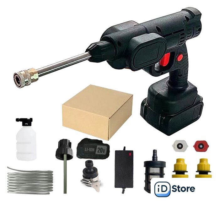 | Комплектация | Пистолет - 1 шт.Аккумулятор Li-Ion - 2 шт.Металлическая штанга - 1 шт.Шланг - 1 шт.Коннектор для шланга - 1шт.Штуцер для садового полива - 1шт.Фильтр для шланга - 1 шт .Зарядное устройство - 1 шт.Насадка-распылитель - 2 шт.Емкость для моющего средства - 1 шт.Быстроразъемный соединитель - 2 шт.Руководство по эксплуатации - 1 шт. |