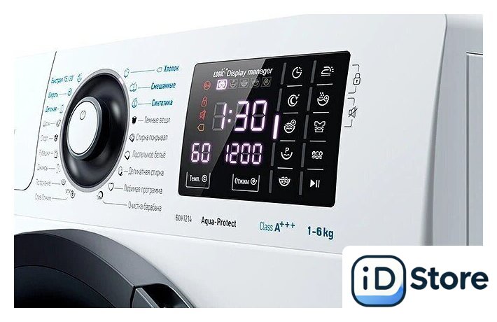 | Оригинальные функции | антибактериальная защита уплотнителя, гребня и лотка, программа самоочистки барабана, система контроля дисбаланса, ночной режим |