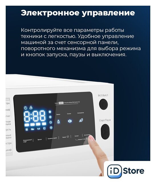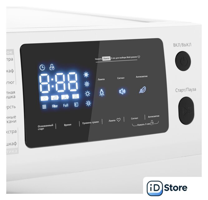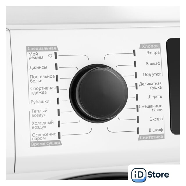 | Все программы | Хлопок экстраХлопок в шкафХлопок под утюгДеликатная сушкаШерстьСинтетика экстраСинтетика в шкафОсвежение паромХолодный воздухТеплый воздухРубашкиСпортивная одеждаПостельное бельеСмешанные тканиДжинсыМой режим |