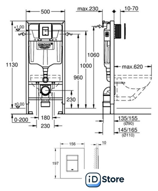 | Отверстия под инсталляцию | 230 мм |