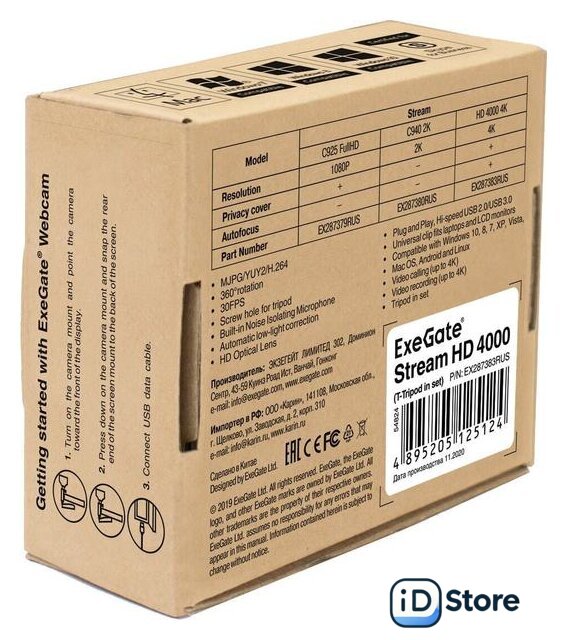 Комплект поставки | - WEB-камера;- Штатив Tele Ball EX287382RUS;- Руководство пользователя. |