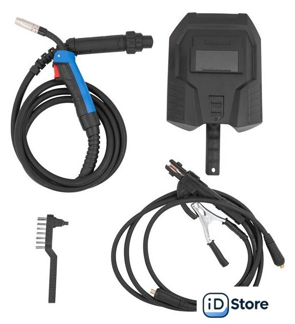 Комплект поставки | - сварочный щиток;- молоток-щетка;- горелка АК15 с евроразъемом 3м;- кабель заземления 1.2м;- 2 наконечника для сопла горелки (0.6 и 0.8 мм). |