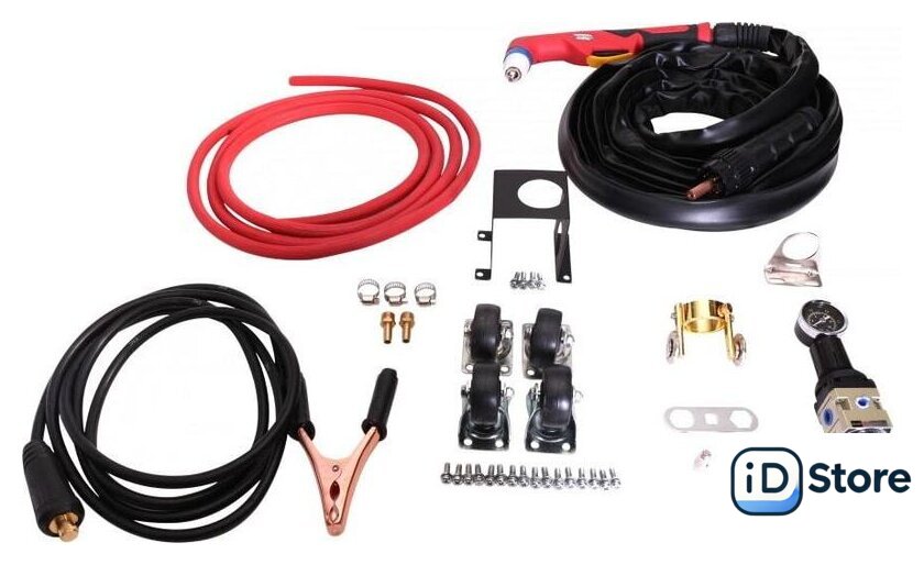 | Комплект поставки | - Инверторный аппарат для воздушно-плазменной резки- Плазменный резак ИПР 100 в сборе, 6м- Клемма заземления в сборе 300А с кабелем 16 мм2, 3м- Влагомаслоотделитель- Шланг газовый 8х12, 3м- Ключ для затяжки электрода и наконечника.- Электрод- Сопло- Ограничитель- Паспорт |