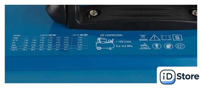 Комплект поставки | - Плазморез - 1 шт;- Резак плазменный 2.5 м с аксессуарами;- Клемма заземления с кабелем 2 м;- Регулятор давления воздуха (установлен на аппарат);- Руководство по эксплуатации. |