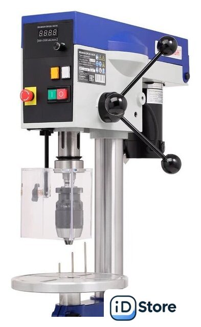 | Комплект поставки | - Головка сверлильная в сборе- Основание станка- Колонна опорная- Стол рабочий- Кронштейн рабочего стола*- Фланец опорной колонны, нижний*- Конус- Ручка фиксации рабочего стола- Рукоятка подачи- Ручка-фиксатор- Патрон сверлильный быстрозажимной- Экран защитный- Направляющая защитного экрана*- Выколотка- Вставка в рабочий стол- Комплект ключей- Комплект крепежа*- Руководство по эксплуатации- Упаковка*Данная позиция может быть установлена на станок |