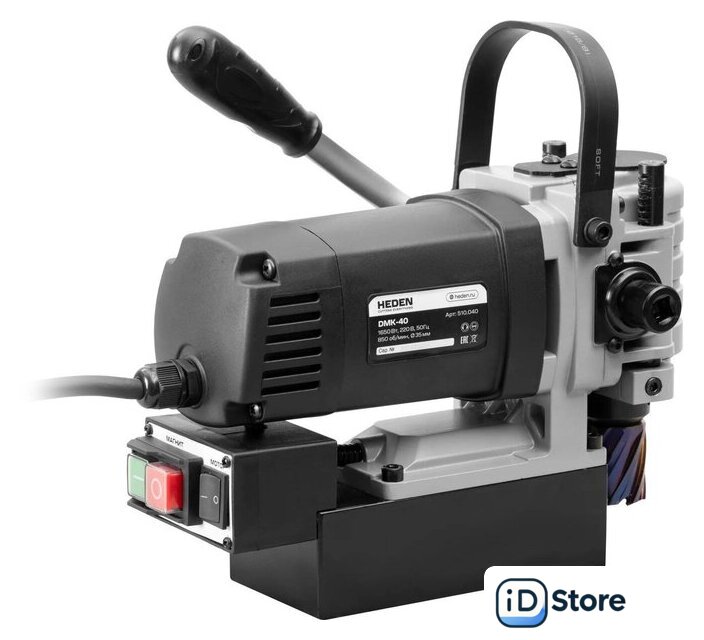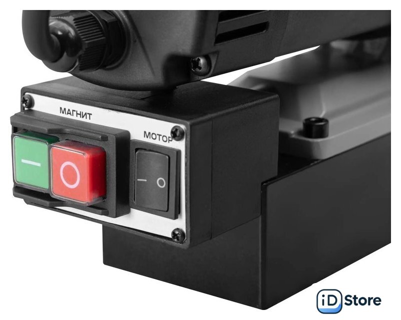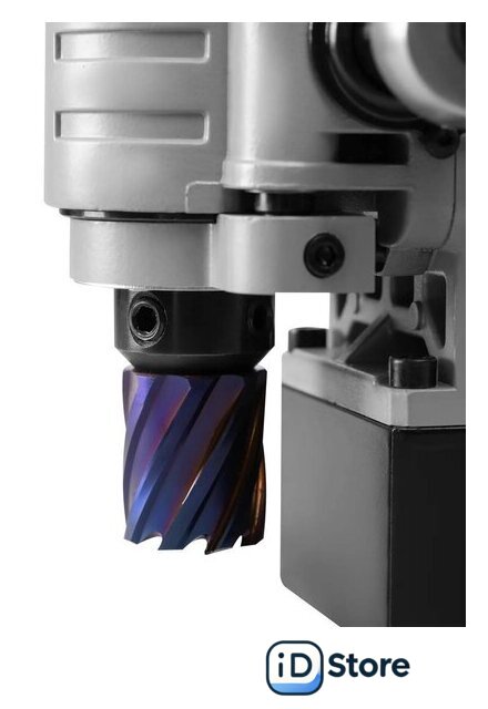 | Комплект поставки | - Магнитный сверлильный станок.- Кейс пластиковый.- Ремень страховочный.- Ключ шестигранный 6 мм.- Рукоятка-трещётка подачи привода.- Рукоятка для транспортировки.- Винт под ключ шестигранный 6 мм, 2 шт.- Ёмкость для СОЖ с распылителем 250 мл.- Инструкция. |