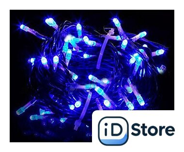 гирлянда, для использования в помещении/на улице, длина 10 м, 100 ламп, питание от сети, свечение мерцающее, IP65, провод черный резиновый